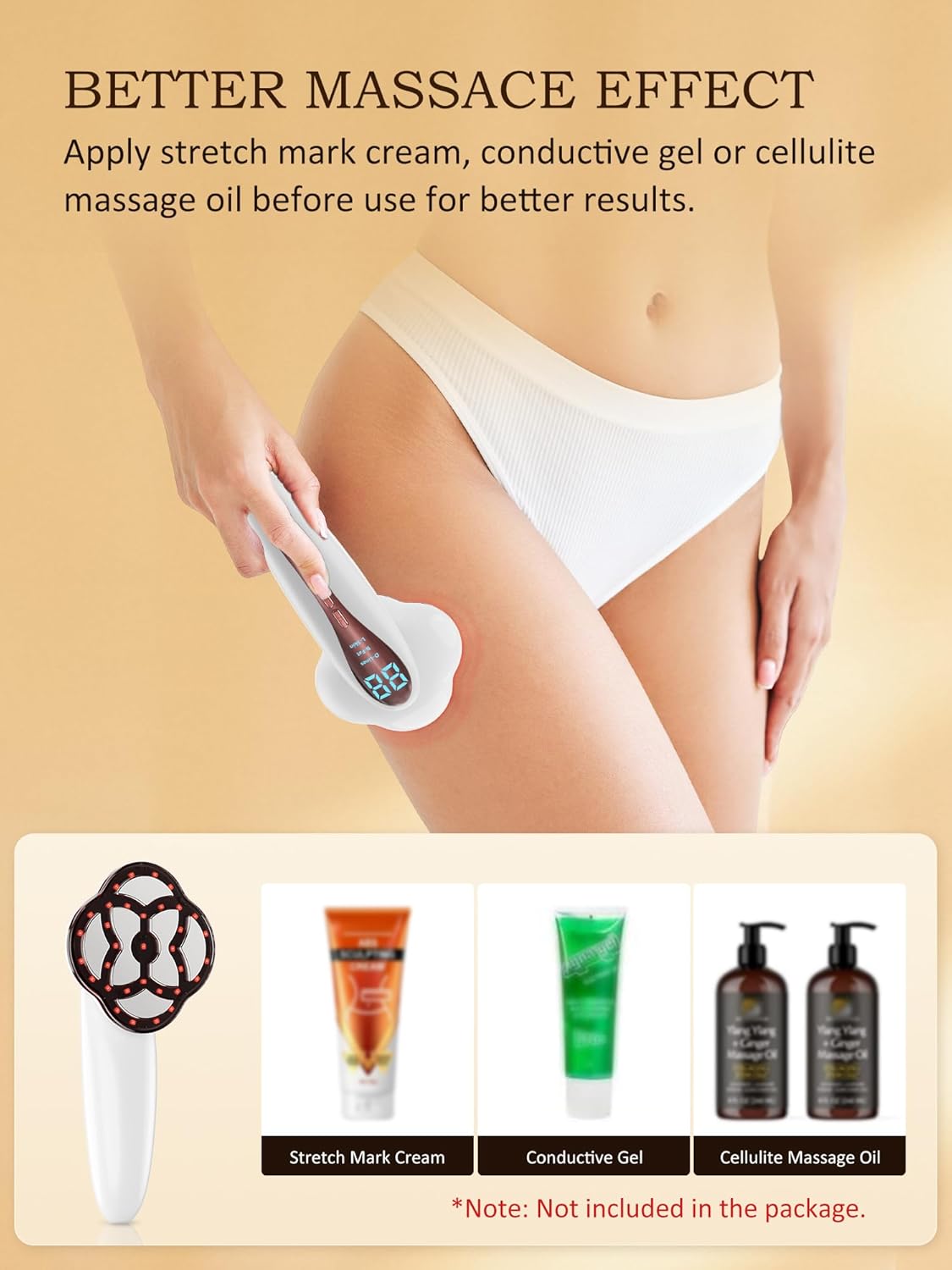 Easy to Use:The intelligent LED display of anti cellulite massager device can select modes and intensity. Apply your preferred gel or cream (not included) and massage in circular motions on target areas. It is recommended to use it 2-3 times a week, 15 minutes each time.For optimal results, combine with a healthy diet and regular exercise. User-friendly controls and a gentle design ensure safe and comfortable daily use. The flat massage head design is easier to clean